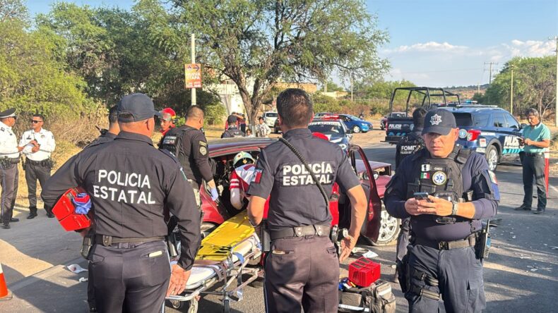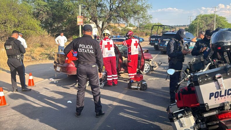 Por lo anterior, los oficiales de la Policía Estatal y paramédicos de la Cruz Roja Mexicana se movilizaron al lugar de los hechos, donde avistaron un automotor tipo taxi Nissan March en color blanco, en el cual viajaba el chofer de entre 30 a 35 años de edad y un pasajero de copiloto de aproximadamente 30 años, siendo este último que presentó lesiones menores.
