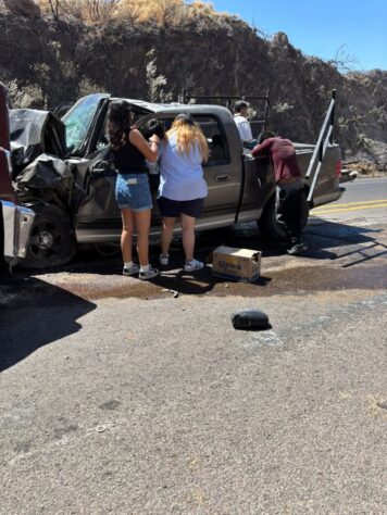 Al salir de ese municipio la unidad de motor colisionó de frente contra el camión torton, por lo que varias personas se aproximaron a auxiliar a las víctimas.