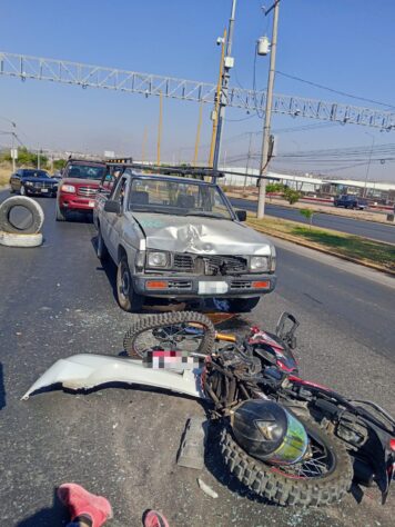Acto seguido, una camioneta Pick-Up marca Nissan en color plata, conducida por Rubén, de 18 años de edad, no alcanzó a frenar e impactó por detrás a la motocicleta.
