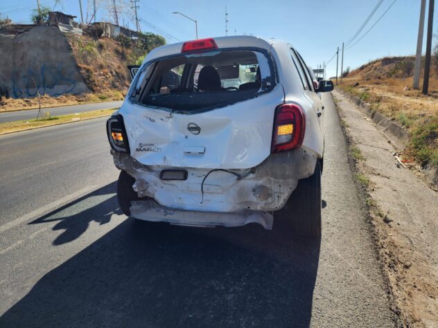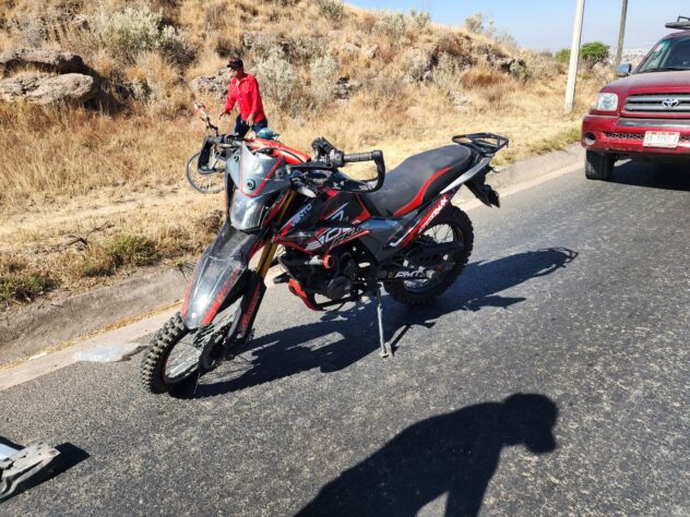 Así fue como a la brevedad que oficiales de la Policía Vial de Aguascalientes arribaron a la zona oriente de la ciudad indicada y detectaron una motocicleta de la marca Vento color negro en la cual viajaba Brian, de 25 años de edad, quien en los hechos, al llegar al cruce mencionado no guardó su distancia y se estrelló en la parte trasera de un coche Nissan color blanco, en el cual se desplazaba Gemma, de 27 años de edad, quien resultó ilesa.