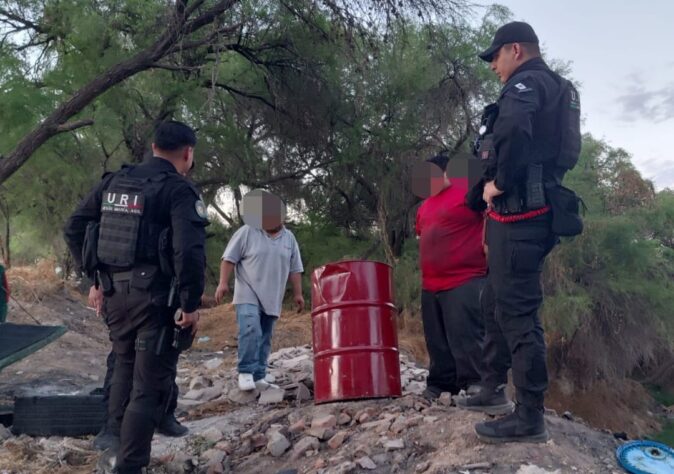 Dos sujetos fueron sorprendidos vertiendo aceite en el cauce del Río San Pedro en el municipio de Jesús María y oficiales de Seguridad Pública los aprehendieron por el delito contra el ambiente y la gestión ambiental.