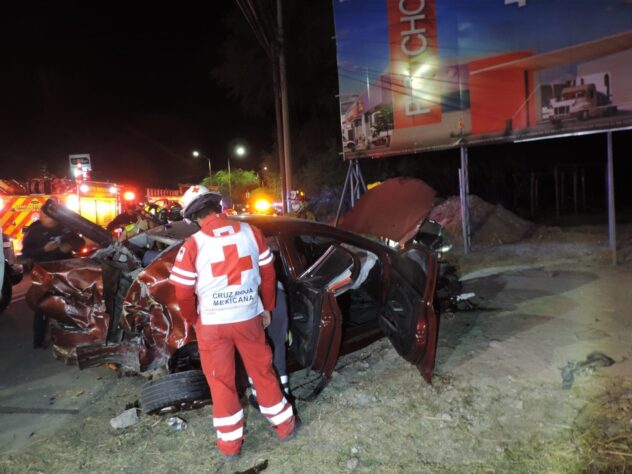 El accidente se reportó desde la zona poniente de la ciudad, justo a la altura de la empresa Valle Redondo, donde un vehículo sedán se estrelló contra varios objetos fijos quedando destrozado, por lo que a la brevedad elementos policiacos y de rescate se desplazaron a la zona del siniestro.