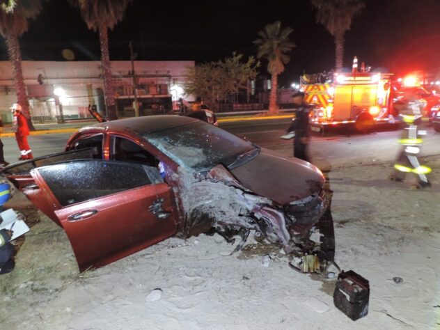 En la zona del accidente se logró conocer que el conductor se impactó contra una palmera, y dio un giro de 180 grados, hasta impactar contra una segunda palmera, y continuaron su camino hasta detener su marcha.