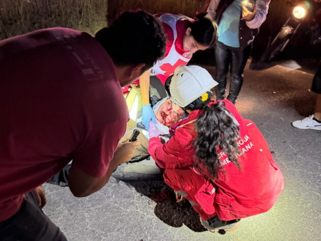 Un hombre que viajaba en una motocicleta sufrió un aparatoso accidente en el cual sufrió severas lesiones en el rostro y la cabeza, motivo por el que fue auxiliado por paramédicos y elementos policiacos.